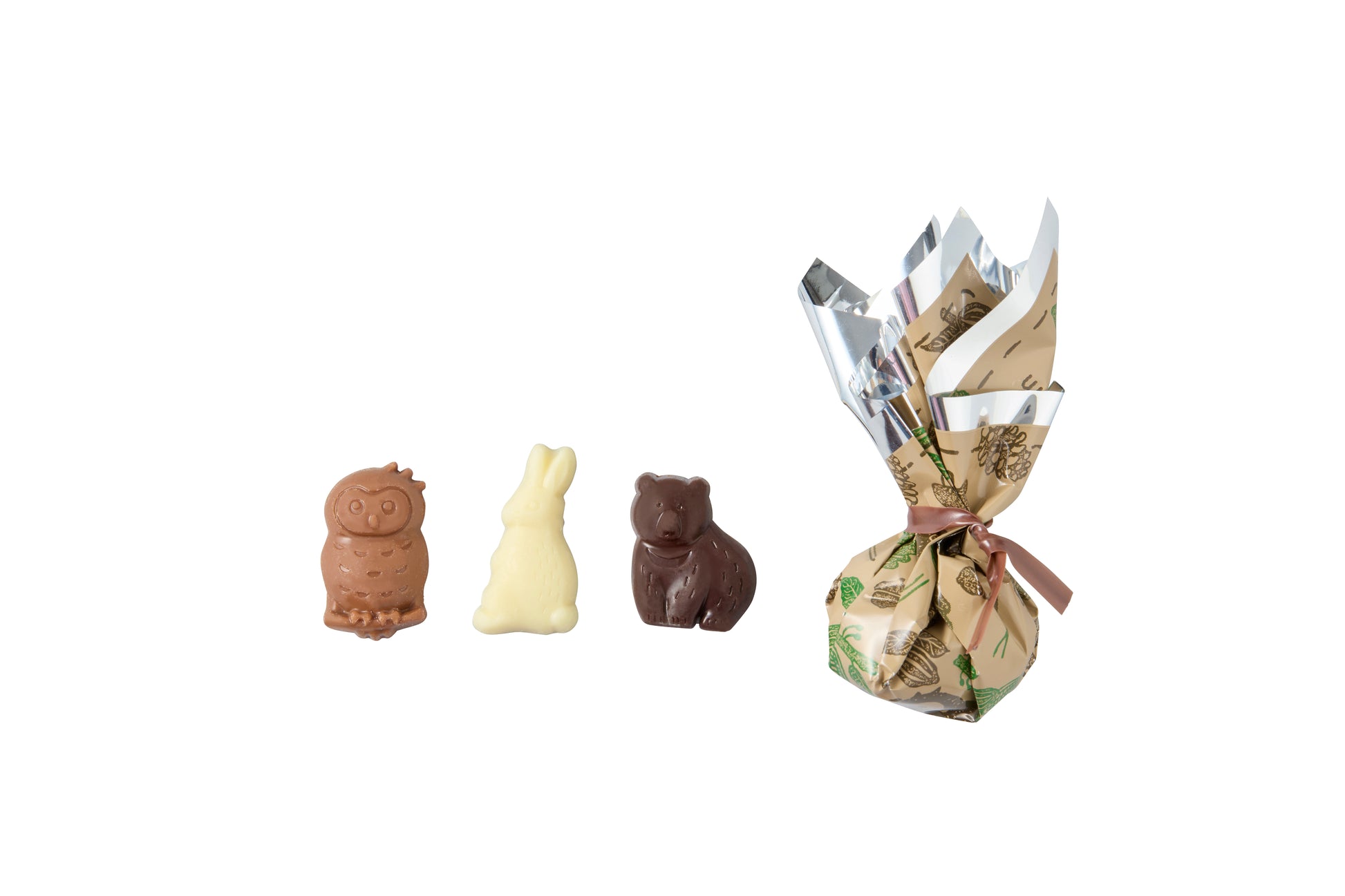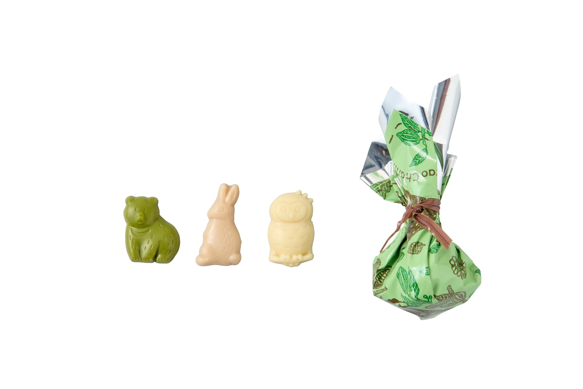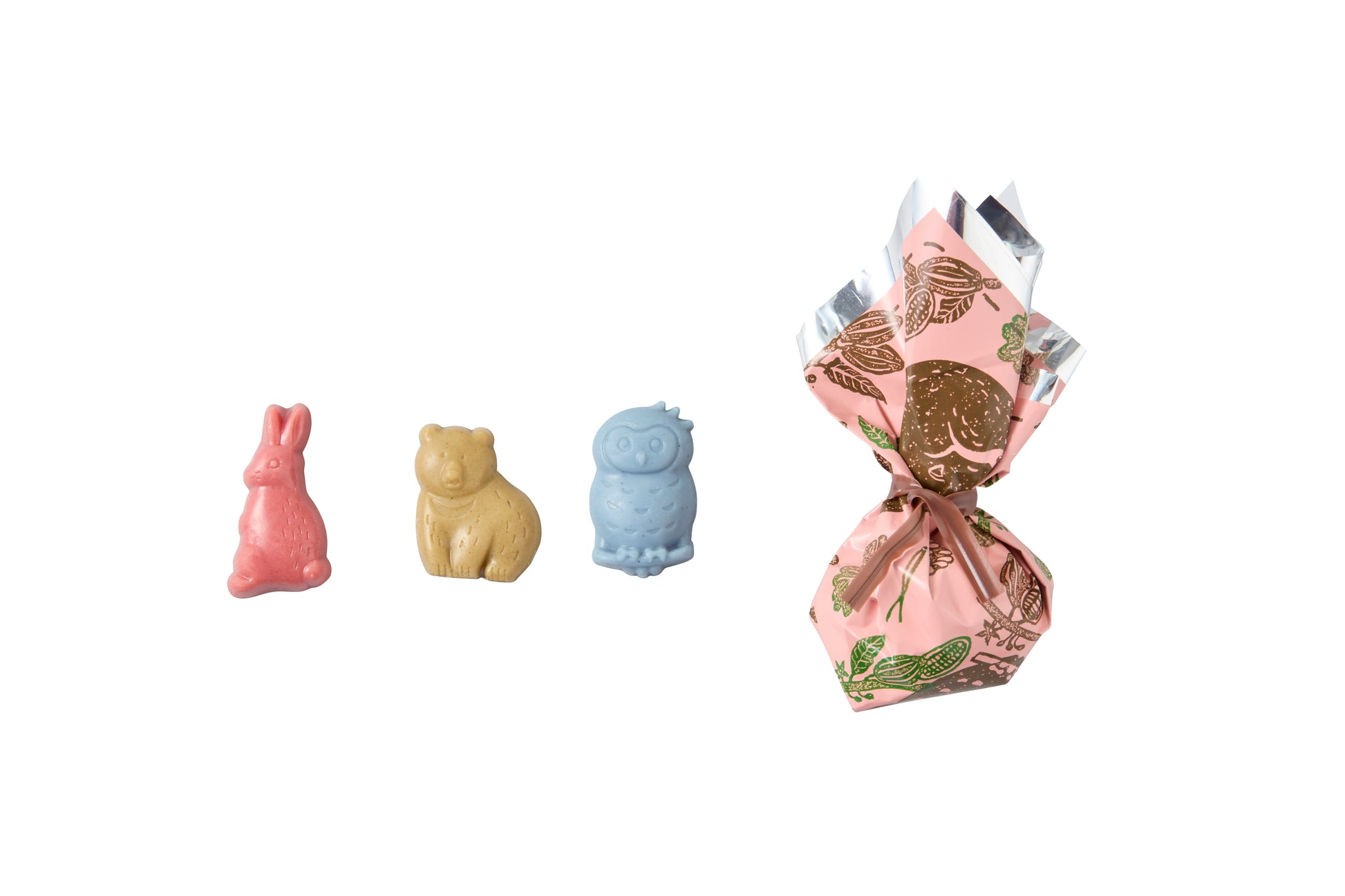 色とりどりの動物型チョコレートを巾着袋に詰めた、見た目も心も弾むギフトボックス。